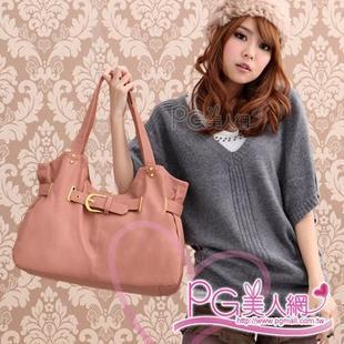PG กระเป๋าแฟชั่นสีชมพู แต่งสายเข็มขัดด้านหน้า