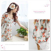 T9055052 (เสื้อผ้าแฟชั่นพร้อมส่ง) นำเข้า Tokyo Fashion 100% เสื้อลายดอกไม้ มีริบบิ้นผูก