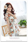 Tokyo Fashion เสื้อลายดอกไม้ มีริบบิ้นผูก สไตล์เสื้อผ้าแฟชั่นเกาหลีพร้อมส่ง ของแท้ 100% นำเข้า