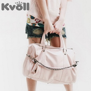 NEW Kvoll กระเป๋าสะพายหนังสีชมพู ติดสายโซ่ด้านหน้า มีซิปปิดด้านบน http://www.missbshop.com/index.php?lay=show&ac=cat_show_pro_detail&cid=1777&pid=170761 รหัส : Bag584