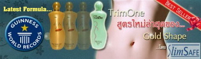 ลดความอ้วน สลายไขมัน เห็นผลตั้งแต่ชั่วโมงแรก ได้รับการบันทึกลง Guinness Book of World Record ทริมวัน โลชั่นกระชับผิว สูตร SlimSafe ผลิตภัฒฑ์เพื่อหุ่นเพรียวบาง สูตรสลิมเซฟเป็นสูตรที่พัฒนาจากส่วนผสมจากธรรมชาติ ที่ช่วยเร่งการเผาผลาญไขมันส่วนเกิน และยับยั้งการสะสมไขมันใหม่ได้อย่างมีประสิทธิภาพ อีกทั้งยังช่วยกระตุ้นการไหลเวียนของเลือดเพื่อสุขภาพผิวที่ดีอีกด้วย เนื้อบางเบา ซึมง่าย ไม่เหนียวเหนอะหนะ ช่วยให้ผิวกระชับ เพียงลูบไล้โลชั่นให้ชุ่มและทั่วบริเวณที่มีส่วนเกิน หรือเซลลูไลท์ วันละ 2 ครั้ง หลังอาบน้ำ เช้า-เย็น ยิ่งใช้มากจะได้ผลเร็วยิ่งขึ้น