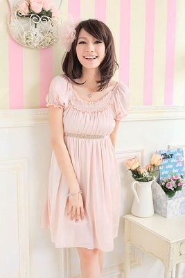NEW LY ชุดเดรสแขนตุ๊กตาผ้าซาตินสีชมพู จับจีบย่นๆช่วงอก ต่อใต้อกแต่งเพชรสวยหรูพร้อมสายคาดผูกโบว์ด้านหลัง http://www.missbshop.com/index.php?lay=show&ac=cat_show_pro_detail&cid=12935&pid=169428 Size : M