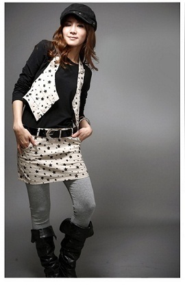 ขายส่ง ชุดแซกเสื้อยืดแขนยาวสีดำตัดต่อกระโปรงสีครีมพิมพ์ลายดาวสีดำ+เสื้อกั๊กเข้าชุดจ้า http://www.weloveshopping.com/template/w09/showproduct.php?pid=15324677&shopid=28677 Freesize