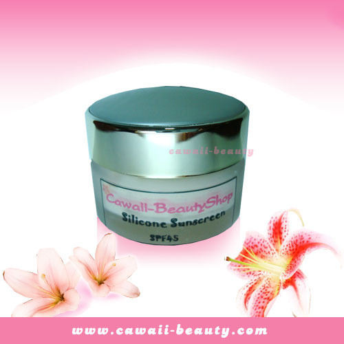 ครีมกันแดด Silicone elastomer base (ครีมกันแดดซิลิโคน) ด้วยส่วนผสมจากธรรมชาติและสารป้องกันแสงแดด สูงถึง 45 เท่า พร้อมควบคุมความมัน ป้องกันการเกิดสิว และบำรุงผิวให้ขาวเนียนใส ใน ตัวเดียวกัน ช่วยปรับสีผิวให้สม่ำเสมอเนียนเรียบ บางเบา โดยครีมกันแดดซิลิโคนนี้จะมีสีเนื้อเบส(สีเนื้ออ่อน) ทาแล้วดูกลืนเข้ากับผิวได้เป็นอย่างดี โดยไม่ดูหลอกตาหรือว่าเหมือนทารองพื้น พร้อมปกป้องคุณจาก UVA-UVB IR สาเหตุของฝ้า และความหมองคล้ำ ด้วย SPF45 พร้อมสารธรรมชาติปรับสีผิวขาวสว่างใส ด้วยอาร์บูตินควบคุมการสร้างเม็ดสีเมลานิน และไม่เกิดสิวด้วยไคโตซาน (สารสกัดจากเปลือกกุ้ง-ปู) ควบคุมความมัน