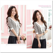เสื้อผ้าแฟชั่นเกาหลีพร้อมส่ง เสื้อผ้ายืดคอตตอน มีโบว์สีขาว นำเข้า Tokyo Fashion พร้อมส่ง ของแท้ 100%