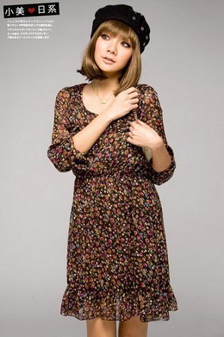 ขายส่ง ชุดเดรสผ้าชีฟองแขนสามส่วนโทนสีน้ำตาล แต่งลายดอกไม้เล็กๆสีแดง ติดยางยืดช่วงเอว แต่งระบายที่ชายกระโปรงด้วยจ้า http://www.weloveshopping.com/template/w09/showproduct.php?pid=15799973&shopid=28677 Size : M