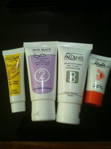 ตัวแรก nano serum vitamin C ช่วยหน้ากระจ่างใจ 15 ml ตัว 2 Anti black ลดการสร้างเม็ดสี ช่วยผิวหน้าขาวใส 35 g ตัว 3 Melanis ลดการสร้างเม็ดสี ลดฝ้า กระ รอยดำ ช่วยผิวหน้าขาวใส 35 g ตัว 4 super sunblock spf 60 10 g ขายทั้ง set 650 บาทรวมค่าส่ง ถ้าซื้อร้านหมอราคาประมาณ 1100 ติดต่อ 0846765527