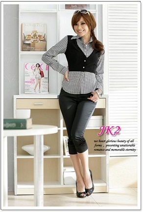 Promotion เสื้อเชิ้ตแขนยาวผ้าคอตตอนลายสก็อตสีดำ ติดกระดุมด้านหน้า ตัดต่อให้เหมือนใส่เสื้อกั๊กดำด้านหน้าค่ะ Brand ฮ่องกง JK2
