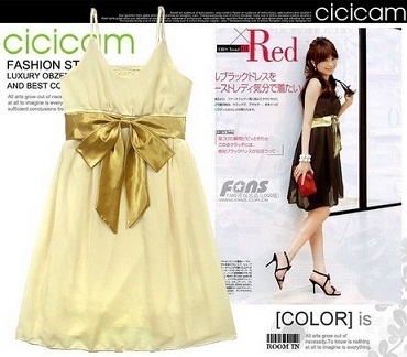 QuQugo ชุดเดรสสายเดี่ยวผ้าชีฟองสีครีม แต่งโบว์สีทองเพิ่มความโดดเด่นค่ะ http://www.weloveshopping.com/template/w09/showproduct.php?pid=15614157&shopid=28677 Size : M