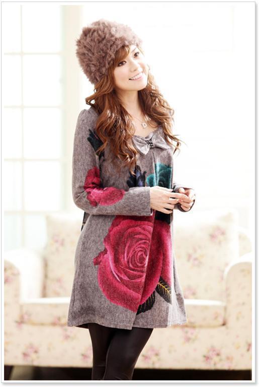 แซกสั้นหรือเสื้อตัวยาวผ้านิตติ้งแขนยาวสีเทา ติดโบว์แต่งเพชรที่ช่วงอก ตัวชุดพิมพ์ลายดอกกุหลาบสีม่วงเขียว Brand JK2 http://www.weloveshopping.com/template/w09/showproduct.php?pid=14871933&shopid=28677 Size : M