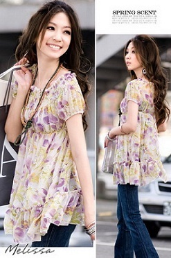 เสื้อแขนตุ๊กตาผ้าชีฟองลายดอกไม้สีม่วง จับจีบย่นๆ http://www.weloveshopping.com/template/a07/showproduct.php?pid=15476915&shopid=13363 Freesize