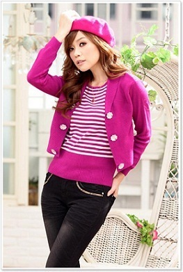 เสื้อคลุมผ้านิตติ้งแขนยาวสีชมพู ตัดต่อเสื้อตัวในลายทางขาวชมพู แต่งกระดุมใหญ่ด้านหน้า จั๊มช่วงเอวด้วย Brand JK2 http://www.bb-import.com/template/w09/showproduct.php?pid=14871649&shopid=28677 Size : M