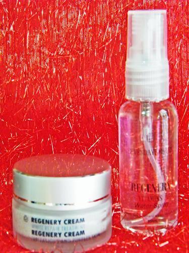 REGENERY WHITE REPAIR SET << ชุดฟื้นฟูปรับสภาพผิวแพ้ให้กลับมาขาวใสดั้งเดิม >> รีเจนเนอร์รี่ ไวท์ รีแพร์ เซ็ท เป็นสูตรเฉพาะของเภสัชกรกลุ่มหนึ่งที่ใช้กันในวงใน ในกรณีที่ผิวหน้ามีอาการหน้าแสบ จนแดง กลายเป็นหมองคล้ำ อาการหน้าบาง ปัญหาสิวอักเสบ ผื่นแดง รอยแดงจากสิว จากอาการแพ้ครีมทาหน้า เครื่องสำอาง ฯลฯ Regenery White Repair Set ประกอบด้วย 1. Regenery Cream รีเจนเนอร์รี่ ครีม เป็นครีมเนื้อนุ่มสีขาว เหมือนครีมหน้าใสผสมทรีทเมนท์ แต่มีคุณสมบัติต่างกันตรงที่ รีเจนเนอร์รี่ ครีม สามารถตอบสนองและรักษาอาการแพ้ของผิวหน้าได้โดยตรง เช่นการแพ้ที่เกิดจากการโดนสารเคมี การทาครีมเกินขนาด การใช้ครีมผิดประเภท การแพ้แดด แพ้น้ำ และทั้งยังช่วยปรับสภาพและฟื้นฟูให้ผิวหน้ากลับมาขาวใส ปิ๋งๆ ได้เหมือนเดิมภายในระยะเวลาไม่นาน 2. Regenery Vitamin Water Spray สเปรย์น้ำแร่วิตามินสมานผิว มีคุณสมบัติเฉพาะในการปกป้องดูแลรักษาอาการแพ้การระคายเคืองของผิวหน้าที่มาจากน้ำแร่ธรรมชาติ วิตามินบี3 และเกลือทะเลพร้อมช่วยปรับสมดุล คืนความชุ่มชื้นให้แก่ผิว ฟื้นฟูและฟื้นคืนผิวให้มีสภาพแข็งแรง ลดการอักเสบและติดเชื้อของสิวอักเสบ ให้ความเย็นความชุ่มชื้นกับผิว และสมานผิวให้กลับมาขาวใสสุขภาพดีได้อย่างที่คุณต้องการ