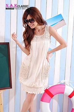 ชุดแซกแขนกุดสีครีม แต่งเชือกถักที่ช่วงอกและกระเป๋า จั๊มปลายกระโปรง ซับในทั้งตัวจ้า http://www.bb-import.com/template/w09/showproduct.php?pid=15390232&shopid=28677 Freesize