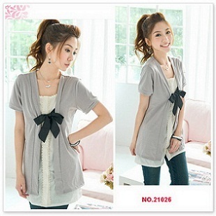 เสื้อคลุมผ้ายืดตัวยาวสีเทา ตัดต่อเสื้อตัวในผ้าคอตตอนสีครีม มีริบบิ้นผูกโบว์ด้านหน้า Brand ฮ่องกง QN http://www.bb-import.com/template/w09/showproduct.php?pid=15388873&shopid=28677 Size : M