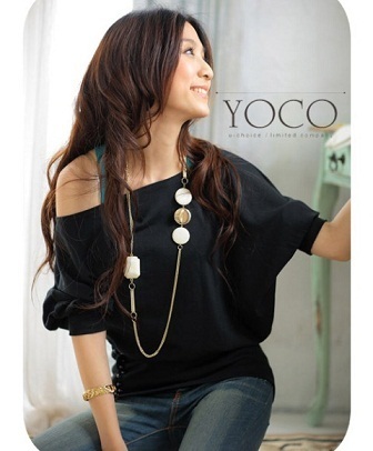 เสื้อยืดคอปาดแขนสั้นสีดำ จั๊มเข้ารูปและแต่งกระดุมที่ช่วงเอวค่ะ Brand ไต้หวัน Melissa