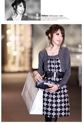 ชุดแซกผ้านิตติ้งลายข้าวหลามตัดโทนสีเทา ตัดต่อเสื้อคลุมตัวสั้นด้านนอกค่ะ (ไม่รวมเข็มขัด) Brand ไต้หวัน Tian-Mu