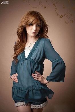 เสื้อแขนสามส่วนผ้าชีฟองสีน้ำเงิน แต่งลูกไม้เพิ่มความหวานช่วงอก มีซับในค่ะ (ไม่รวมเสื้อตัวใน) YBF2