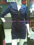 เดรสน้ำเงินสด ซิปด้านหน้าย่นไหล่ยก เปรี้ยวสุดๆ ราคา 1000 บาท ผ้าซาตินแบบหนา(ไม่แข็ง)