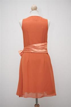พร้อมส่งค่ะ!! ชุดเดรสคอวีแขนกุดผ้าชีฟองเนื้อละเอียดสีส้ม คาดผ้าซาตินมันๆติดโบว์เย็บติดที่ช่วงเอว ชายกระโปรงจีบจีบพริ้วๆรอบตัว มีซับในจ้า