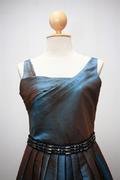 พร้อมส่งค่ะ!! ชุดเดรสแขนกุดผ้าไหมเนื้อดีสีฟ้าเขียว ดีไซน์จับจีบเฉียงที่อก ช่วงเอวแต่งเลื่อมสุดหรู ชายกระโปรงอัดพลีทรอบตัวจ้า (มีซับในอย่างดีทั้งตัว)