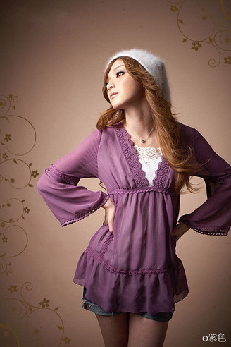 (ขายส่งเสื้อผ้าแฟชั่น 6 ชิ้น) เสื้อแขนสามส่วนผ้าชีฟองสีแดงอมม่วง (ในรูปเป็นสีม่วง) แต่งลูกไม้เพิ่มความหวานช่วงอก มีซับในค่ะ (ไม่รวมเสื้อตัวใน) YBF2