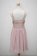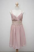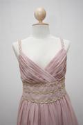 ชุดเดรสสายเดี่ยวผ้าชีฟองสีชมพูอ่อน จับจีบเฉียงที่ช่วงอก