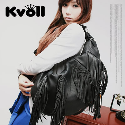 พร้อมส่งค่ะ!! กระเป๋าสะพายหนังสีดำ ดีไซน์ทรงเกือกม้า แต่งพลูเส้นเพิ่มความเก๋จ้า Brand เกาหลี Kvoll