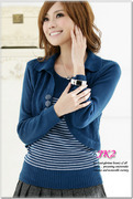 เสื้อผ้าแฟชั่นเกาหลี JK2 พร้อมส่ง เสื้อผ้านิตตัดแบบเสื้อคลุมสีน้ำเงิน ตัวในลายขวางน้ำเงิน-เทา ราคา 440.- เองค่ะ (ร้านเสื้อผ้าเกาหลี YesYesYesShop.com)