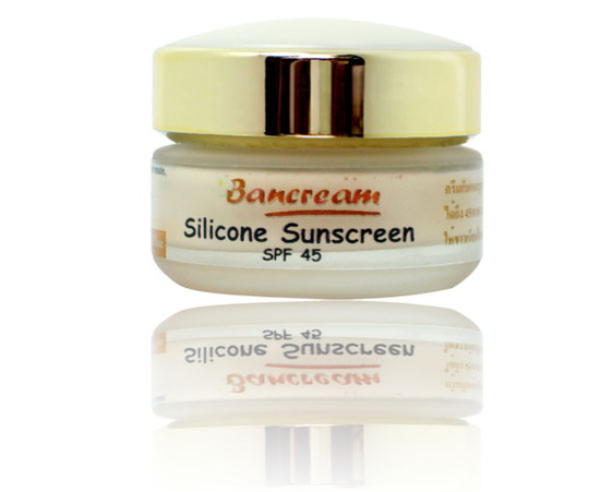 ปราศจากน้ำมัน ครีมกันแดด Silicone elastomer base (ครีมกันแดดซิลิโคน) ด้วยส่วนผสมจากธรรมชาติและสารป้องกันแสงแดด สูงถึง 45 เท่า พร้อมควบคุมความมัน ป้องกันการเกิดสิว และบำรุงผิวให้ขาวเนียนใส ใน ตัวเดียวกัน ช่วยปรับสีผิวให้สม่ำเสมอเนียนเรียบ บางเบา โดยครีมกันแดดซิลิโคนนี้จะมีสีเนื้อเบส(สีเนื้ออ่อน) ทาแล้วดูกลืนเข้ากับผิวได้เป็นอย่างดี โดยไม่ดูหลอกตาหรือว่าเหมือนทารองพื้น พร้อมปกป้องคุณจาก UVA-UVB IR สาเหตุของฝ้า และความหมองคล้ำ ด้วย SPF45 พร้อมสารธรรมชาติปรับสีผิวขาวสว่างใส ด้วยอาร์บูตินควบคุมการสร้างเม็ดสีเมลานิน และไม่เกิดสิวด้วยไคโตซาน (สารสกัดจากเปลือกกุ้ง-ปู) ควบคุมความมัน