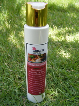 ออยล์สปาขิงสกัดลดไขมันส่วนเกิน ผอมลงได้ใน 1 สัปดาห์ เป็นครีมละลายไขมันโดยไม่ต้องนวด มี Essential Oil จากขิง (Ginger Oil) ซึ่งมีอณูเล็กที่ซึมสู่ผิวได้ง่าย จึงไม่ต้องนวด ให้ความร้อนเมื่อนำมาใช้ในอัตราส่วนที่ เข้มข้น จึงละลายไขมันใต้ผิวหนังได้ ต่างจากครีมละลายไขมันทั่วไปซึ่งทำจากน้ำมันระกำ น้ำมันมวย กลิ่นแรง เหมือนยาหม่องหรือเคาร์เตอร์เพนร้อนเหมือนกัน แต่ไม่ซึมสู่ผิวเพราะมีอณูใหญ่