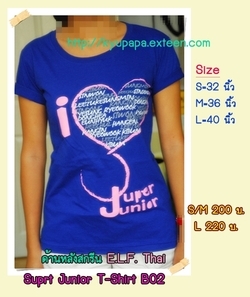 T-Shirt Super Junior for E.L.F. Thai (พร้อมส่ง จ้า) ตอนรับ Super Show II เมื่อกาย พร้อม ใจ พร้อม ว่าแต่ มีเสื้อใส่ไปดูคอนกันรึยังจ่ะ ถ้ามีแล้ว หรือ เบื่อๆ อยากมีอีก KyuPapa จัดมาเสนอกันแล้ว มี 2 สี ให้เลือก เห็นกันจะๆ ไปเลย เสื้อยืดคอ V แบบนี้ มี 2 สี 1. น้ำเงิน สกรีนลายด้วยสีทอง ขาว และ ดำ 2. ขาว สกรีนลายด้วยสีทอง น้ำเงิน และ ดำ Size S = 32-34 นิ้ว M= 36 - 38 นิ้ว L = 40 นิ้ว