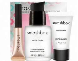 Smashbox: Flawless Finish Skin Perfectors Kit Are you ready for your close-up? It's time to get primed and ready for all those candid holiday shots starring, well, you, and a bevy of joyous friends and family. And lovelies, if you want to look your best in every shot in between savoring all of that holiday cheer, you may want a little help from the http://www.smashbox.com/index.cfm/fuseaction/products.detail/categoryID/d6fe8598-ae1b-4c0d-9b55-87814fccd060/productID/059e3e7e-fbfe-4335-a09c-bc4aef2c3abc/">Smashbox Flawless Finish Skin Perfectors. It's got two of Smashbox's powerhouse products: the Photo Finish Foundation Primer (in a full-size as well as a travel size), a clear gel that smoothes out the skin and hides pores, and the Photo Op Under Eye Brightener, an illuminating potion for under the eyes which hides the "I've had no sleep" look. The Photo Finish Primer feels like silk, so it's no at all mask-like: it doesn't feel like you're wearing anything at all. For us oily-skinned ladies, it's great because it gives a slightly matte finish and seems to absorb oil. The Photo Op Brightener, meanwhile, is like a primer for underneath your concealer – it wakes up tired eyes while it nourishes with Vitamin C, red wine extract, peptides and marine collagen. These two little wonders are what the pros use to make models and actresses look perfectly luminous. So why shouldn't you? Quick Overview Achieve flawless finish with this limited edition skin perfectors kit