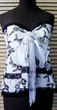 เสื้อเกาะอกสีขาว ทรงสวย ลายดอกไม้กำมะหนี่สีดำ
