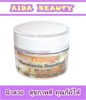 *ครีมบำรุงผิวหน้าขาวแมคาเดเมีย ผสมสารกันแดด SPF 30 PA+* Madamia Cream ปริมาณ 10 กรัม ราคา 250 บาท ^ คุณสมบัติ ^ ครีมแมคาเดียเมียนี้จะช่วยบำรุงให้ผิวหน้าขาวขึ้น ช่วยกระชับรูขุมขน พร้อมการปกปิดให้การแต่งหน้าได้สวยยิ่งขึ้นค่ะ และด้วยสารกันแดดแบบกายภาพ (Physical Suncreen) จึงช่วยปกป้องผิวจากแสงแดดตัวการสำคัญที่ทำร้ายผิวหน้าเรา ได้ถึง 30 เท่าเชียวค่ะ * นอกจากสารสกัดแมคคาเดเมียแล้ว ยังมีส่วนผสมหลักจากโสมนำเข้ามาจากประเทศเกาหลีค่ะ ทาแล้วหน้าเนียน เหมือนทาเมคอัพเบสเลย * ช่วยกระจายแสงทำให้หน้าผ่องขึ้น สามารถแต่งหน้าได้สวยกว่าเดิม เนื้อครีมทาแล้วเข้ากับ สีผิวหน้าของเราค่ะ เนื้อครีมมีสีเบสอ่อนๆ จึงเข้ากับผิวหน้าได้ง่าย เกลี่ยง่าย ไม่เหนียวเหนอะหนะ ครีมนุ่มเนียน * ช่วยให้ใบหน้าผ่องโดยที่ไม่ต้องทาครีมรองพื้นหน้าก็เนียนใสได้ทันที แค่ ทาแป้งฝุ่นหรือแป้งเด็กก็สวยแล้วค่ะ ครีมกันแดด Skin plus SPF 30 มีค่า SPF 30 จึงเหมาะกับสภาพผิวของคนไทย ทั้งสาวที่นั่งทำ งานในออฟฟิศ นั่งหน้าคอม นักเรียน นักศึกษา หรือสาววัยทำงาน ตัวนี้เหมาะเลยค่ะ * ไม่ก่อให้เกิดการอุดตันรูขุมขน ทาไม่เกาะกันเป็ยขุยอย่างครีมกันแดดทั่วไป ที่มักจะเป็นคราบขาว หรือ เป็นขุยขาวๆ ล้างออกง่ายด้วยสบู่หรือโฟมเจลล้างหน้าทั่วไปค่ะ * เมื่อใช้ในระยะยาว จะช่วยกระชับรูขุมขนให้เล็กลงได้ค่ะ ช่วยบำรุงผิว ช่วยปรับสภาพสีผิวคล้ำ ให้ค่อยๆขาว ขึ้นอย่างเป็นธรรมชาติ อีกทั้งยังช่วยปกปิดจุดด่างดำ รอยสิว รอยฝ้า กระอย่าง เป็นธรรมชาติ หน้าขาวเนียนนุ่ม สวยได้ประหยัดเวลาค่ะ ประหยัดครีม ลืมกันแดดตัวเก่าๆไป ได้เลยค่ะ ** ปริมาณน้อยแต่สามารถใช้ได้นานเป็นเดือนค่ะ เพราะทาเพียงบางๆก็พอ เมื่อทาแล้วหน้าเนี๊ยนเนียนขึ้นทันทีเลยค่ะ แค่ทาแป้งฝุ่นอย่างเดียวเอง หน้าก็เด้งเนียนสวย เลยค่ะ ^ วิธีใช้ ^ :: หลังล้างหน้าสะอาด เช็ดหน้าให้แห้งแล้ว แต้มครีมกันแดดมาเล็กน้อย แต้มให้ครบ 5 จุด แก้ม คาง จมูก หน้าผาก หน้าจะเนียนขึ้นทันทีเลยค่ะ ^ ส่วนประกอบสำคัญ ^ :: สารสกัดแมคาเดเมีย, โสมเกาหลี, วิตามิน E , B3 , Allantoion,น้ำแร่บริสุทธิ์,Titanium Dioxide, etc. สอบถามและดูรายละเอียดเพิ่มเติมได้ที่