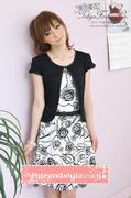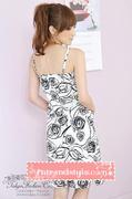 เดรสแฟชั่น Tokyo Fashion - ชุดผ้าคอตตอลลายกุหลาบ 2 ชิ้น แต่งผ้าซาตินเป็นเข็มขัดโบว์ มาพร้อมกับเสื้อคลุมแขนกุดผ้าคอตตอลยืดอย่างดีเย็บขอบด้วยผ้าซาตินสีดำ ของจริงสวยดูดีมากๆ งานเนี๊ยบ สายเดี่ยวแบบปรับสาย
