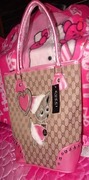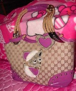 กระเป๋าสะพาย GUCCI เกรด AAA สีน้ำตาลลายน้องหมาน่ารัก ขอบสีชมพู สวยมากค่ะ