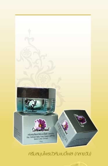 ฟื้นฟู และปรับสภาพผิวหน้า ให้สวยสดใส ด้วยสมุนไพรบัวหิมะ ไม่มีสารปรอทหรือแอมโมเนีย ที่องค์การอาหารและยาห้ามใช้ (มั่นใจในความปลอดภัยได้ค่ะ ) สูตรปรับปรุงใหม่ เพิ่มกันแดด 15 เท่า + วิตามินซี + สมุนไพรนานาชนิด