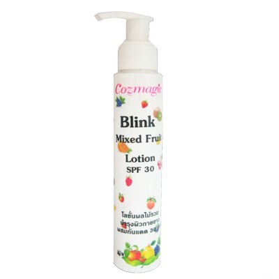 ผิวขาว Fruit Lotion SPF 30* โลชั่นผลไม้รวมบำรุงผิวกายให้เนียนนุ่ม เรียบเนียน พร้อมปรับผิวให้ขาวกระจ่างใสได้ดั่งใจ Blink Mixed Fruit Body Lotion SPF 30