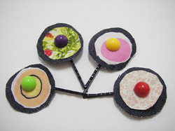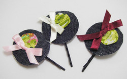ขายส่งกิ๊บผ้ายีนส์ตกแต่งด้วยเศษผ้าและกระดุมหลากสี ความยาว 5 เซนติเมตร