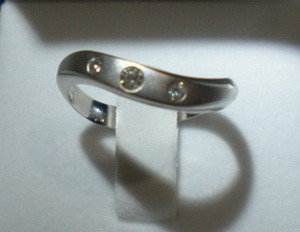 แหวนเพชรแท้น้ำขาวงาม เพชรเรียงสามเม็ด น้ำหนักรวมสิบเอ็ดตังส์ ทองคำขาวบริสุทธิ์ดังรักแท้