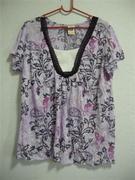 2. เสื้อยืดสีม่วงพิมพ์ลาย งานส่งออก ไซส์ XL รอบอก 40 นิ้ว คอวี มีลิ้นปิดตรงอก รอบแขนกว้าง 6 นิ้ว สะโพกขนาด 48 นิ้ว ความยาวเสื้อ 26 นิ้ว เนื้อผ้าใส่สบายมากค่ะ