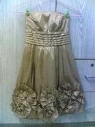 เดรสเกาะอกสีทอง ขนาดรอบอก 34-36 นิ้ว ความยาวประมาณเข่า ผูกโบว์เก๋ๆ ใหญ่ขนาดพอดีไว้ด้านหลัง แบบเหมือนบีน้ำทิพย์ใส่เล่นเรื่องสงครามนางฟ้า สภาพใหม่สุดๆ ใส่ไปงานแต่งงานเพียงแค่ครั้งเดียวเท่านั้น ไม่มีตำหนิ