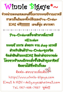 จำหน่ายคอนแทคเลนส์บิ๊กอายและPre-Orderเครื่องสำอางEtude นำเข้าจากประเทศเกาหลี ราคาเป็นกันเองค่ะ