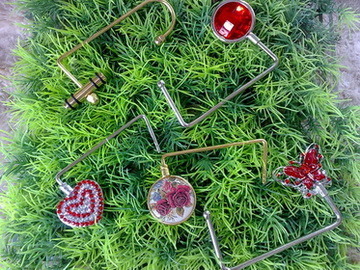 ที่แขวนกระเป๋า มี 4 ลาย ให้เลือก (หัวพลอยแดง, ผีเสื้อ, หัวใจ, แท่งทอง) ไว้ใช้สำหรับแขวนกระเป๋าถือของผู้หญิง ใช้แขวนที่โต๊ะ (เวลาไปงานเลี้ยง,เวลาทำงาน หรือแขวนข้างโต๊ะได้ทุกที่) ใช้หลักจุดศูนย์ถ่วง ทำให้แขวนกระเป๋าที่โต๊ะได้ ไม่ต้องตั้งไว้บนตักอีกต่อไป เพียงชิ้นละ 200 บาท สามารถรับสินค้าได้เลย (สินค้าแต่ละแบบมีจำนวนจำกัด) หากหมดคงต้องรอรอบหน้า ติดต่อสอบถาม เสนีย์ 089-7376262 MSN: