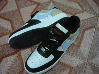 รองเท้ายี่ห้อ NIKE AIR สีฟ้า ทอง ขาวสลับดำ สภาพใหม่มาก 99%