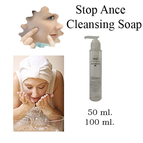 Stop Acne cleansing soap สบู่เหลวลดสิว สบู่ล้างหน้าสูตรอ่อนโยน ระงับเชื้อแบคทีเรีย ที่เป็นสาเหตุของสิว สูตรอ่อนโยน พิเศษสำหรับผู้ที่มีผิวบอบบางแพ้ง่าย