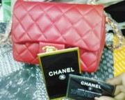 กระเป๋าชาแนลสีแดง โซ่ทอง ขนาด 7 นิ้ว หนังแท้ทั้งใบงานเกาหลีค่ะ เกรด มิลเลอร์ค่ะ