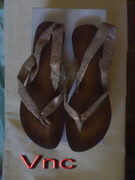 รองเท้า VNC ซื้อมาใส่ไปเที่ยวครั้งเดียวค่ะ สภาพยังใหม่กิ๊กมาก เบอร์รองเท้า 8 น่าจะเหมาะกับคนที่ใส่รองเท้าเบอร์ประมาณ 39-40 แต่ถ้าใหญ่กว่านิดนึงก็อาจจะได้เพราะมีสายรัดเป็นยางยืดด้านข้างค่ะ พื้นรองเท้าเป็นไม้ แต่ไม่เจ็บเท้าเวลาเดินค่ะ ทนทาน เรียบหรู สายรัดเป็นผ้าลายคล้ายๆผ้าไหม สีครีมๆคาดลายทอง ^^ ใครสนใจก็ติดต่อมาได้น่ะค่ะ ตั้งไว้ที่ 450 บาท แต่ถ้าถูกใจก็ต่อรองได้ค่ะ