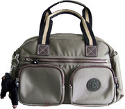 กระเป๋าถือ Kipling สีเทา สายผ้า-หนังแข็งแรงสีน้ำตาล ปั้มตรา kipling